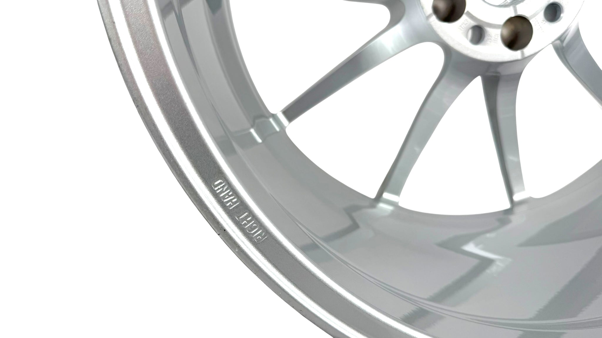 Mclaren 720S Front right turbine wheel in gloss silver. The wheel is for front right placement.