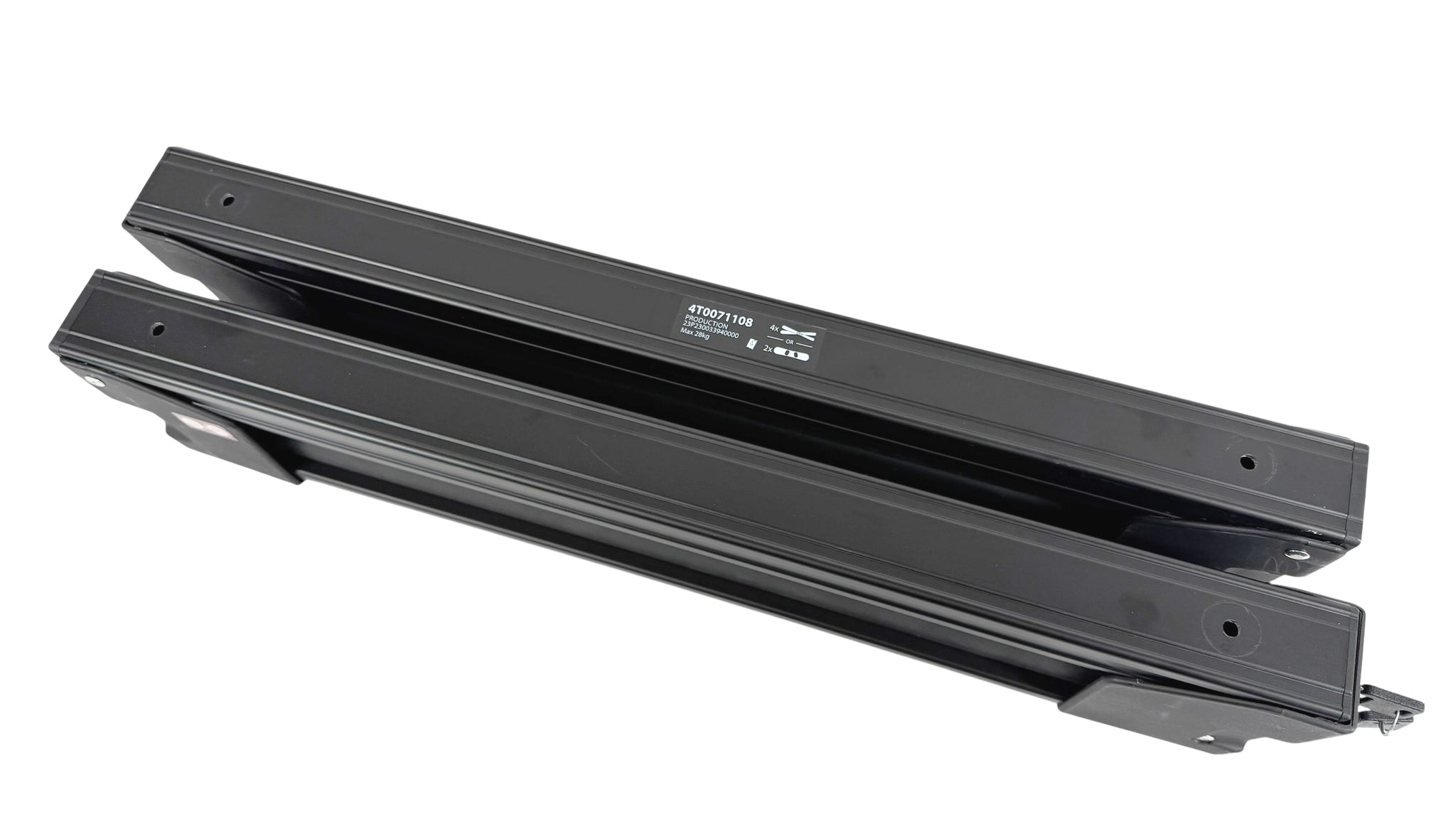The two lightweight aluminum racks can carry up to 4 skis or 2 snowboards. The integrated locking system ensures